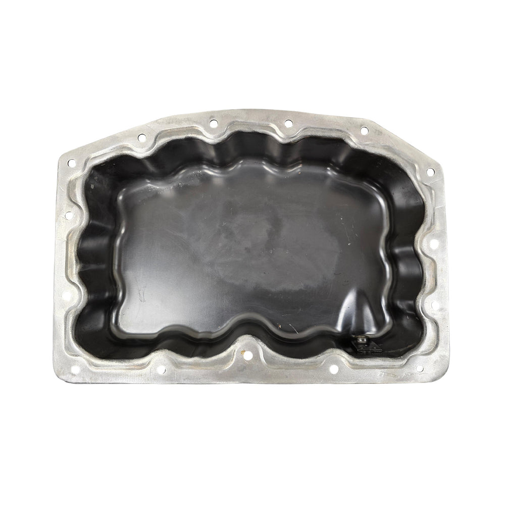 Note on Sealing: The factory service manual specifies using RTV silicone sealant (such as Motorcraft TA-357) between this metal pan and the upper aluminum pan. Gaskets are NOT typically used or included.