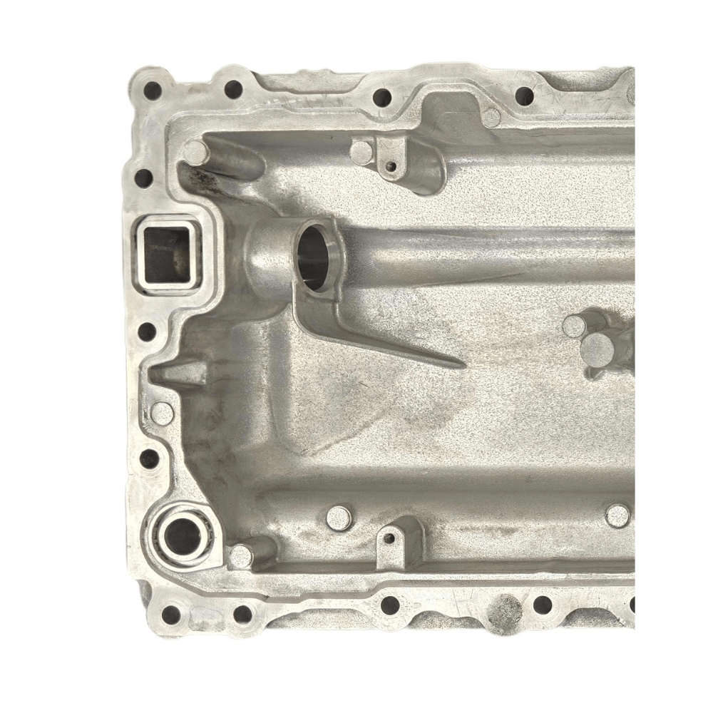 This is the essential aluminum Upper Engine Oil Pan for the 6.7L Powerstroke, a component that forms the intermediate structure between the engine block and the lower oil pan. On the 6.7L engine, this piece is known for its intricate design and is crucial for maintaining the entire lower engine seal.